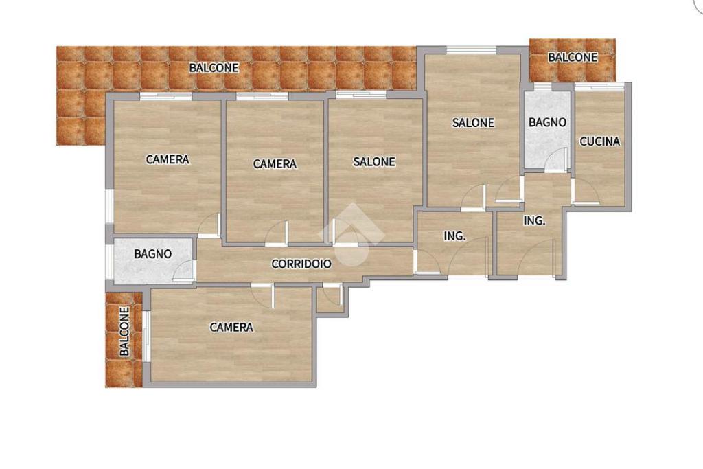 L'appartamento si compone di: ingresso in ampio disimpegno, luminoso soggiorno e sala da pranzo con accesso a un'ampia balconata con vista parziale sul mare, cucina abitabile con balcone, tre spaziose camere da letto, doppi servizi, comodo ripostiglio.