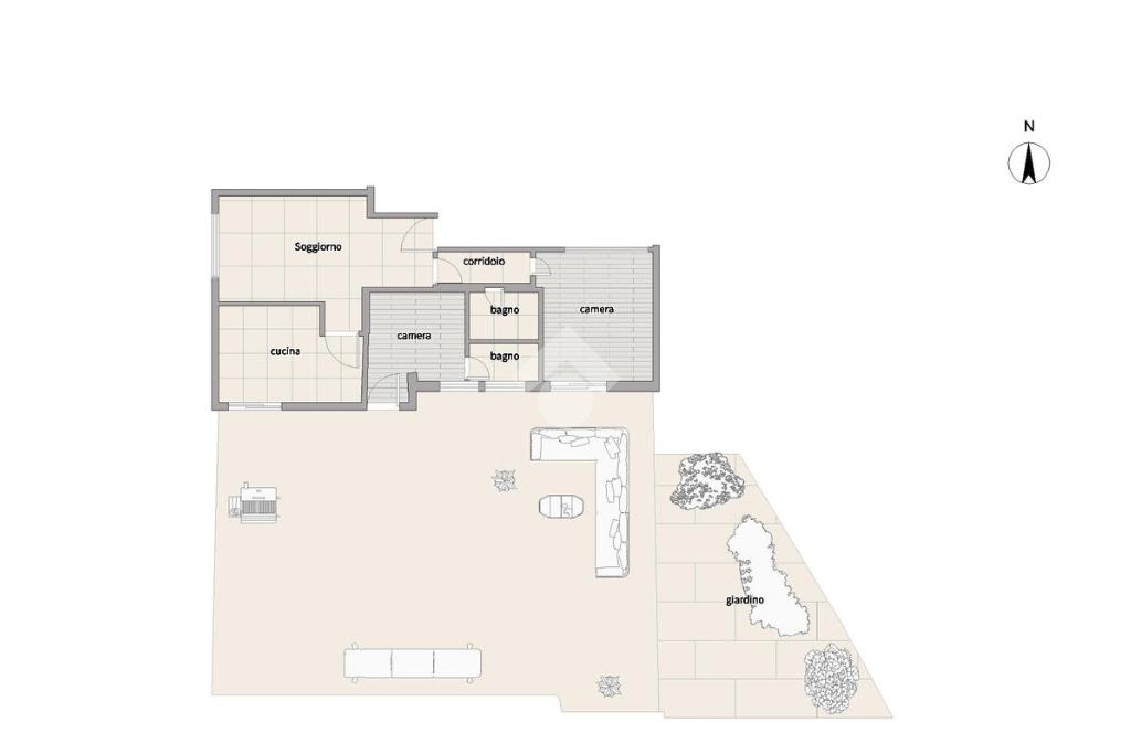 L’immobile, caratterizzato da doppio ingresso (sia indipendente dal giardino che dal vano condominiale), si compone di:Ingresso in comodo disimpegno, Ampio e luminoso salone, Cucina semi-abitabile, Camera da letto matrimoniale, Cameretta con servizio privato ed Ulteriore bagno.