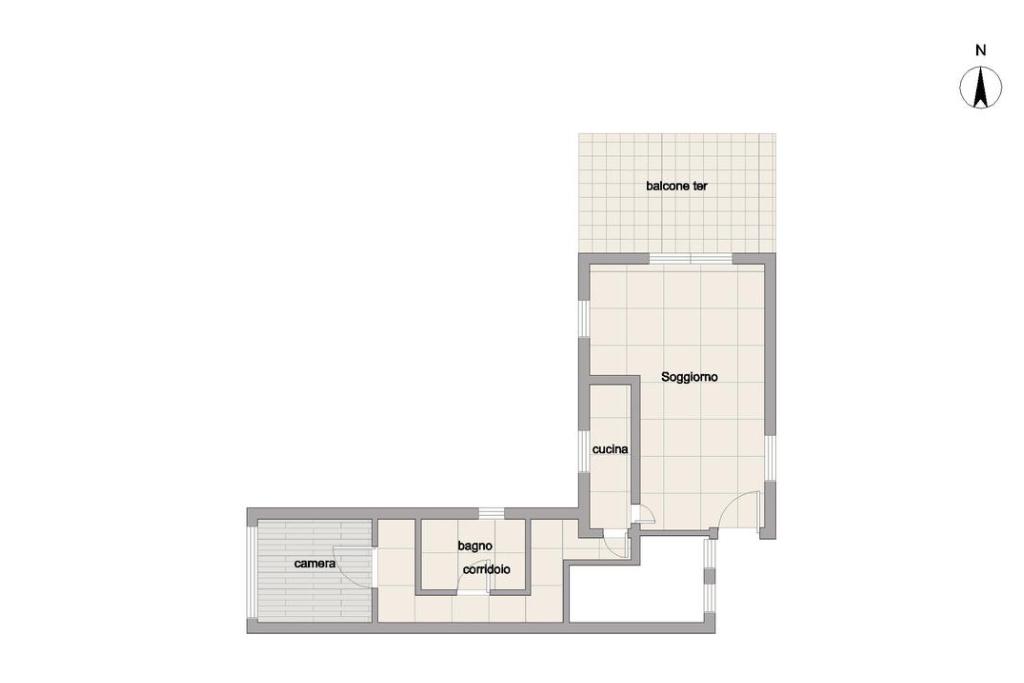L’immobile si compone di: ingresso in soggiorno con accesso al terrazzino, cucina, cameretta, camera da letto e bagno.